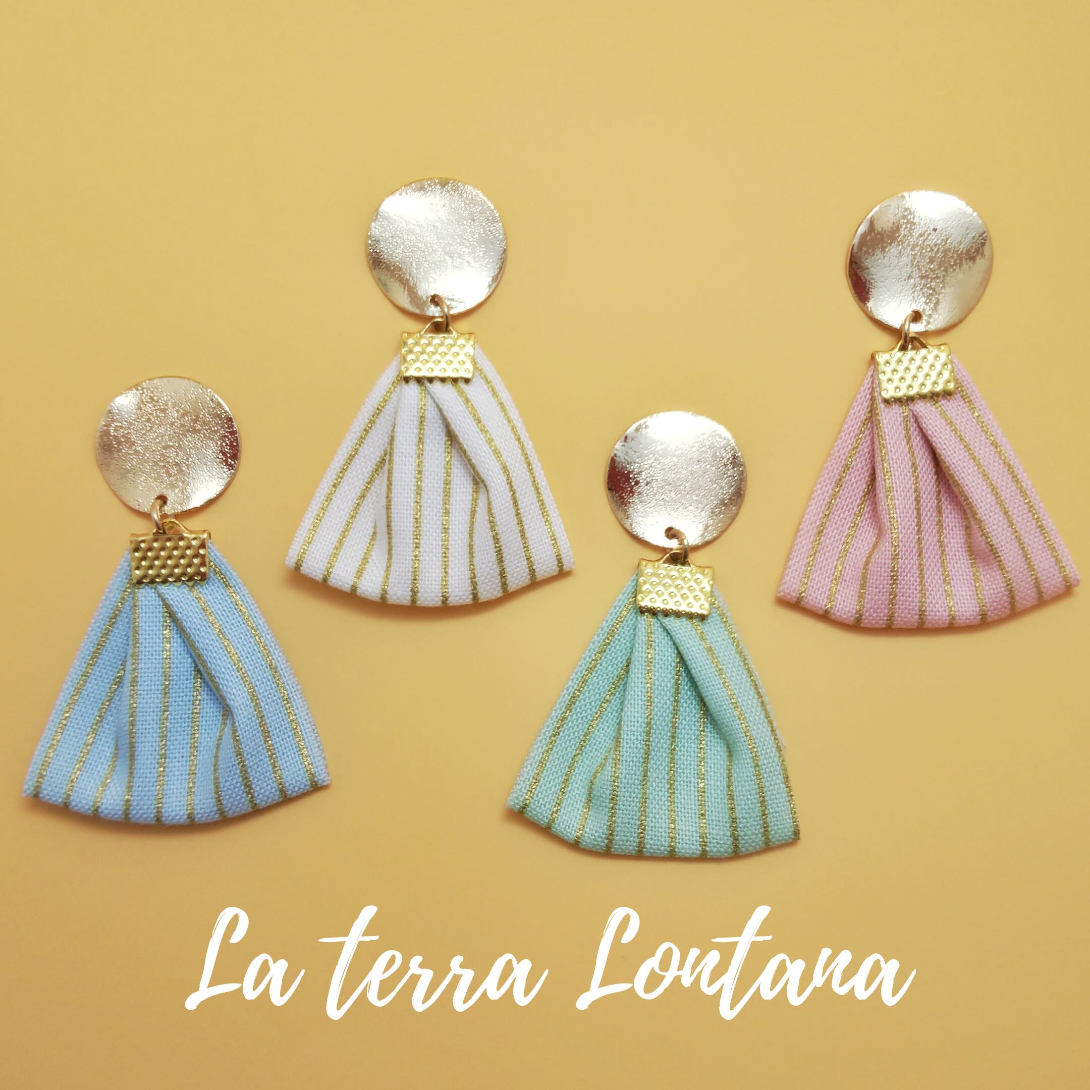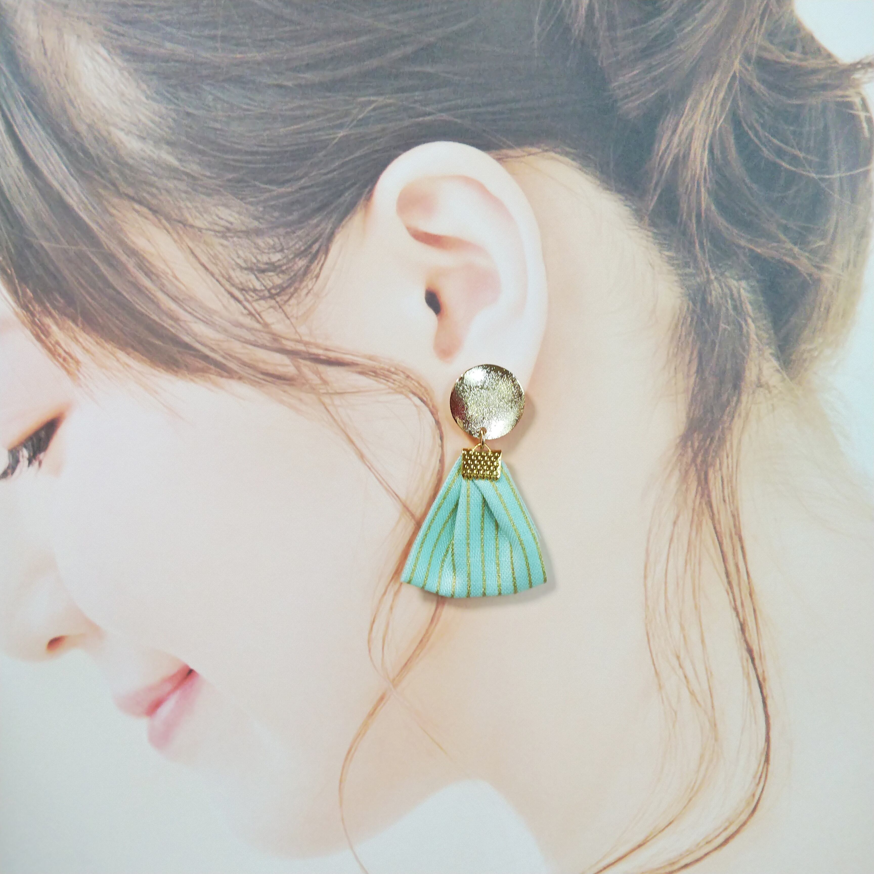 カラーストライプリボン×ゴールドプレート ピアス/イヤリング