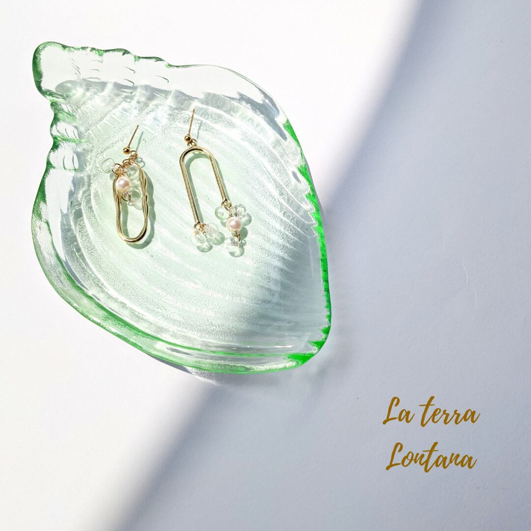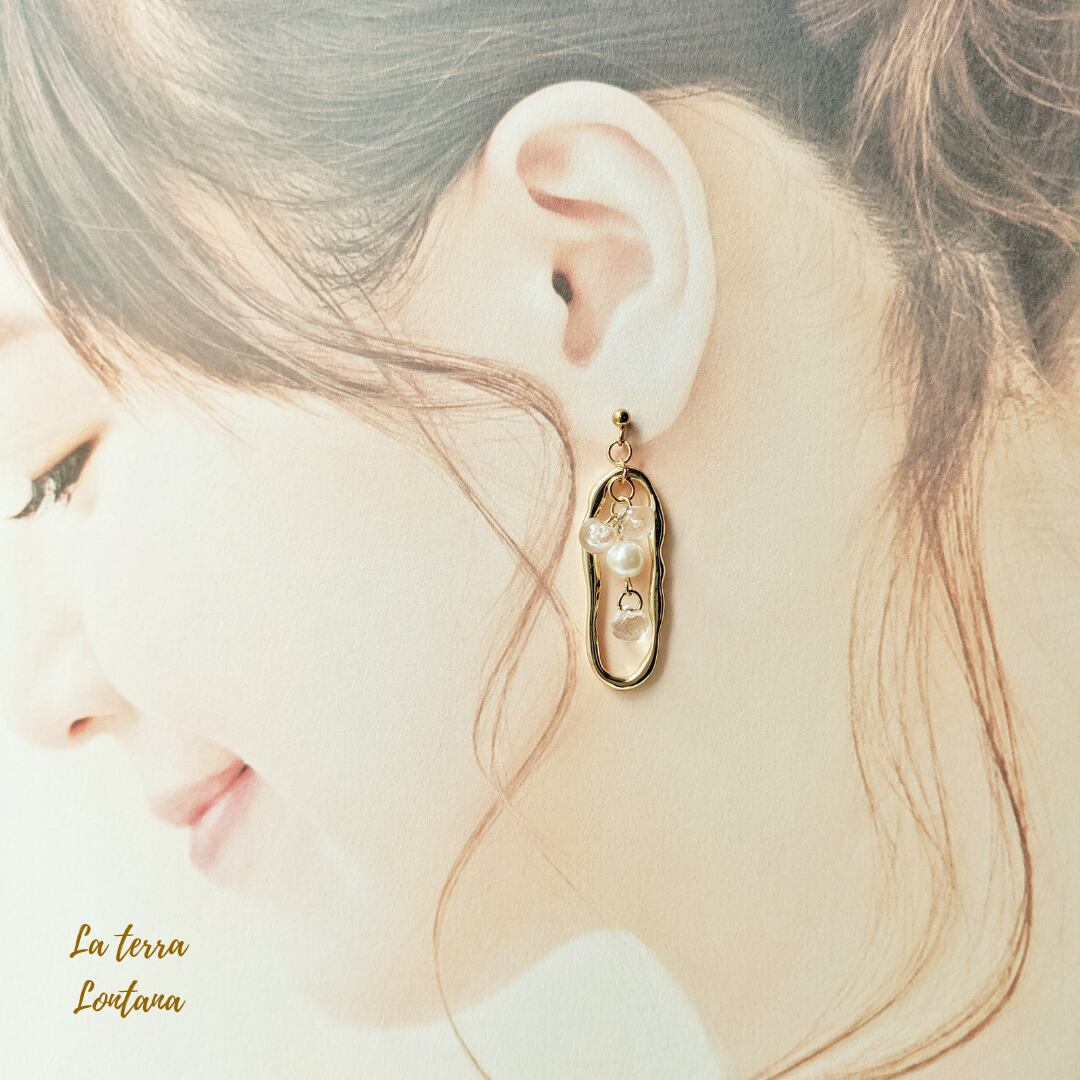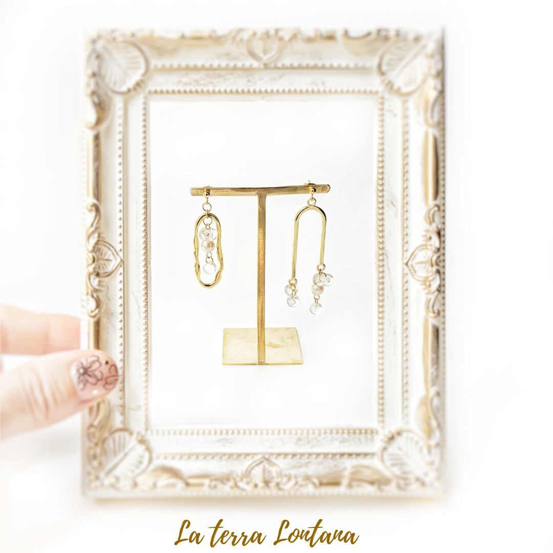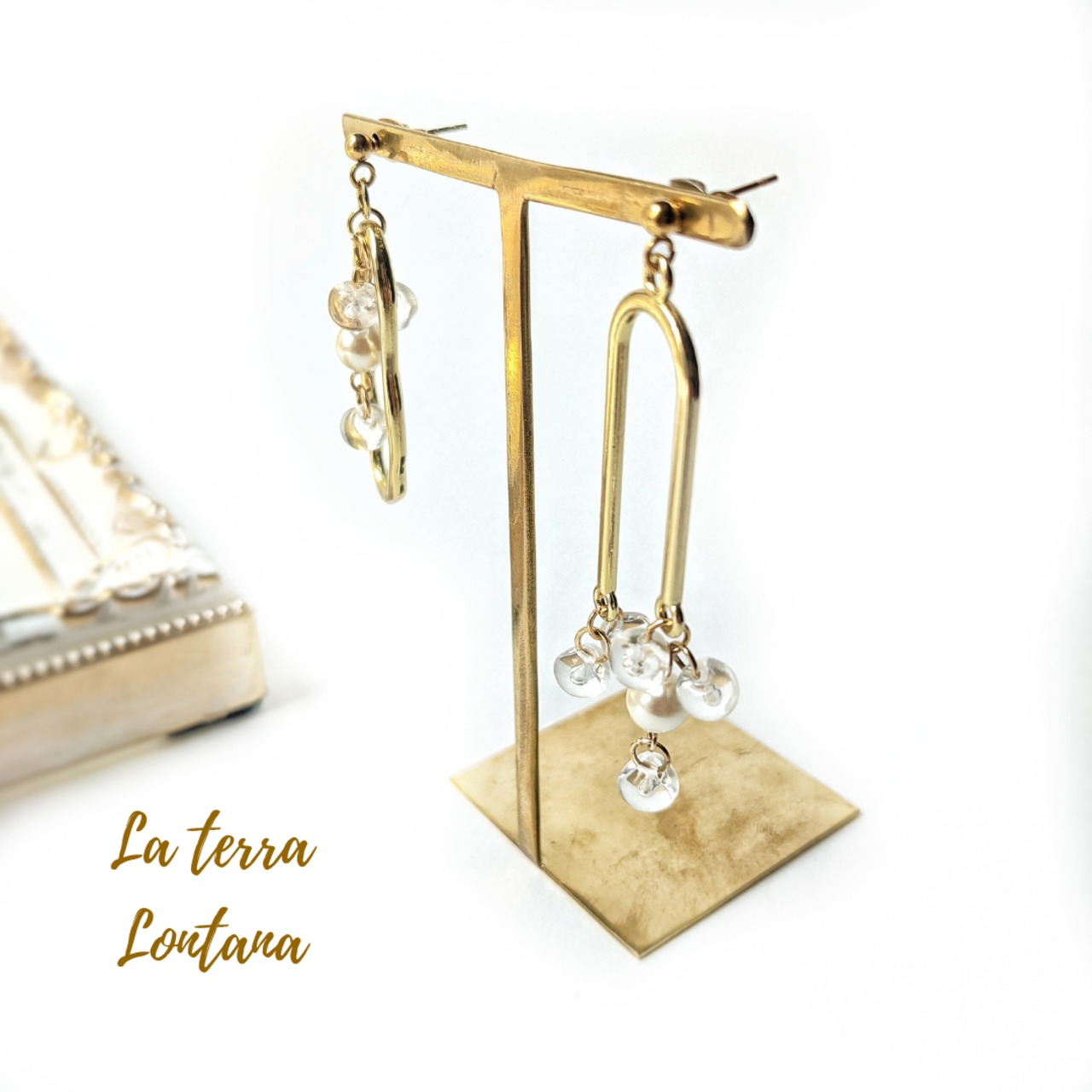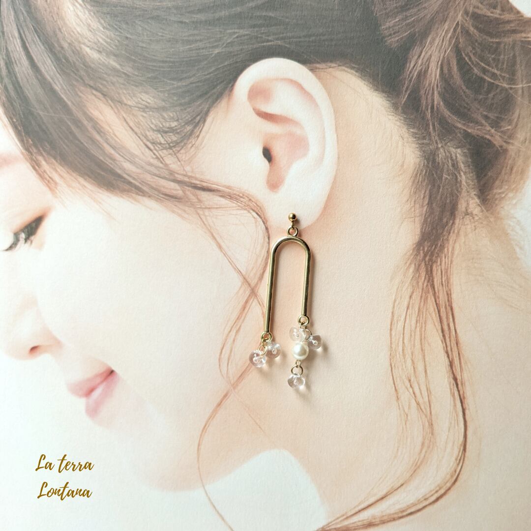 アシンメトリー パール×クリアビーズ ピアス/イヤリング