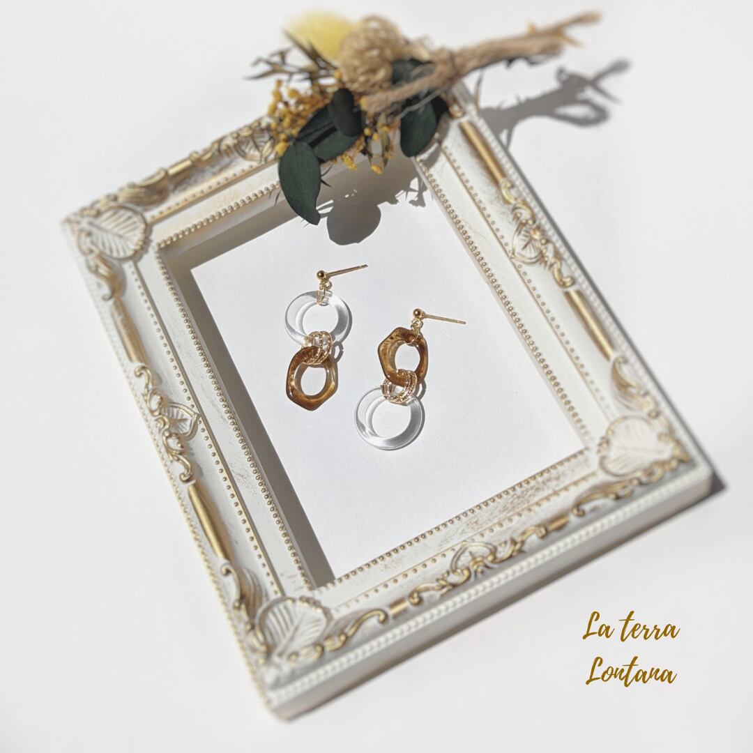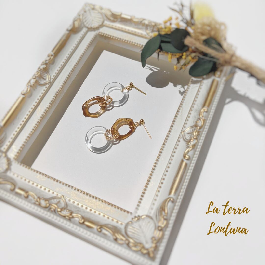 べっ甲×クリア アクリルフープ ピアス/イヤリング