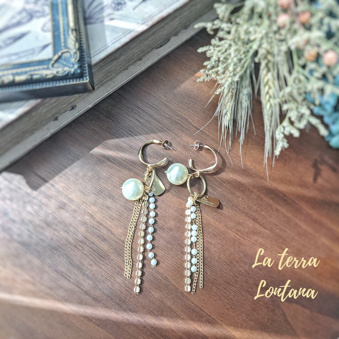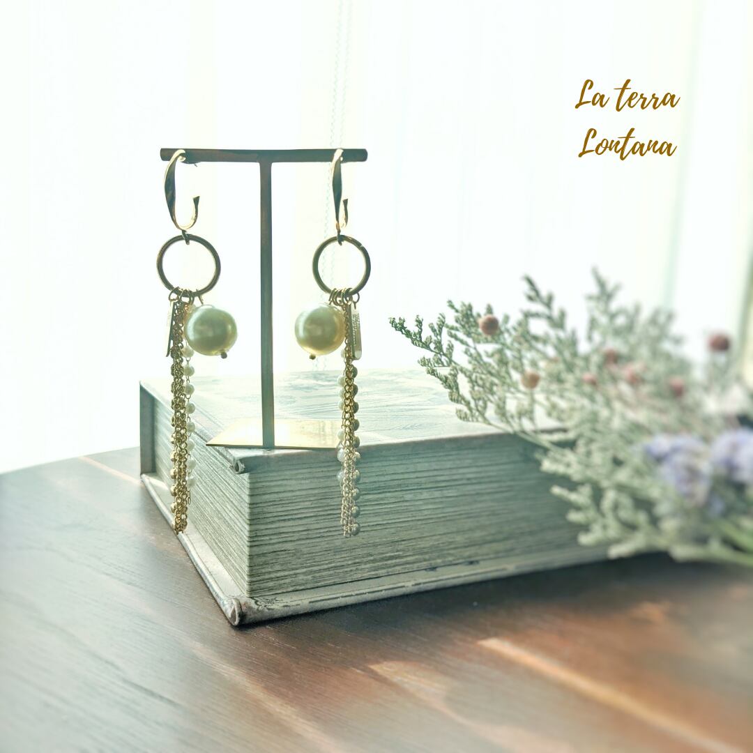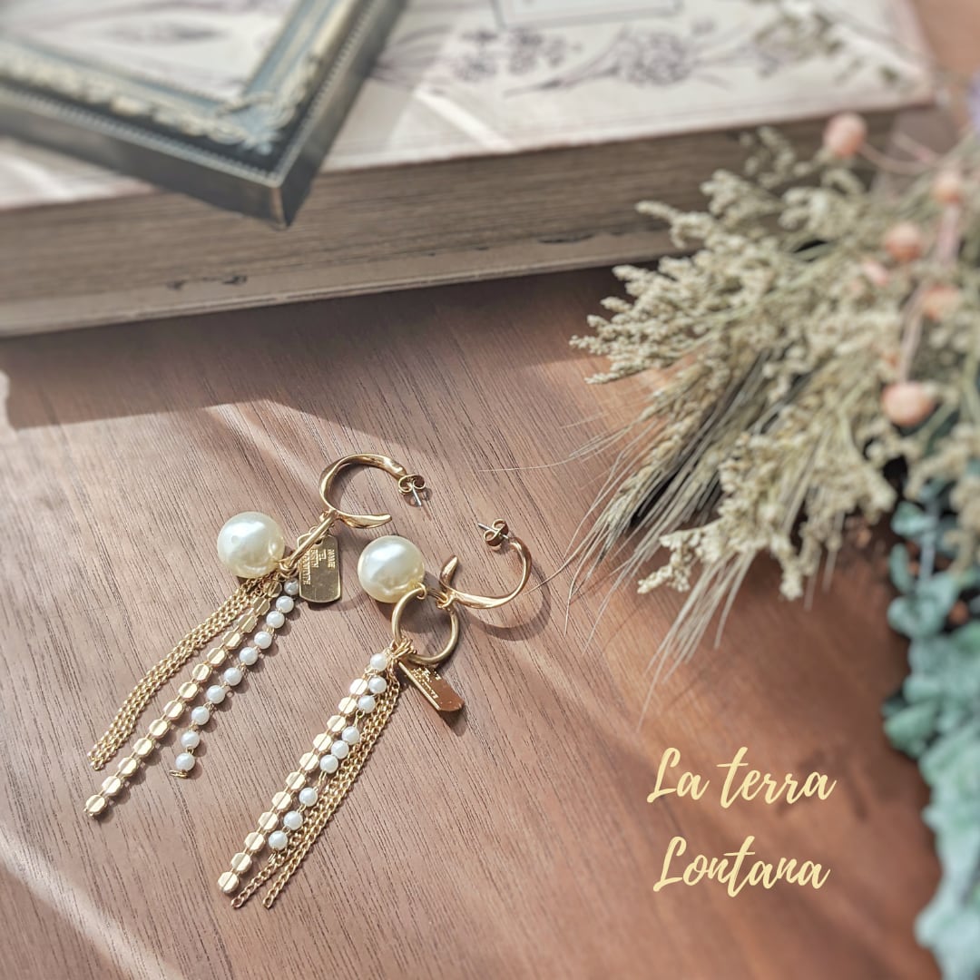 大粒パール×チェーン × ひねりサージカルステンレスピアス