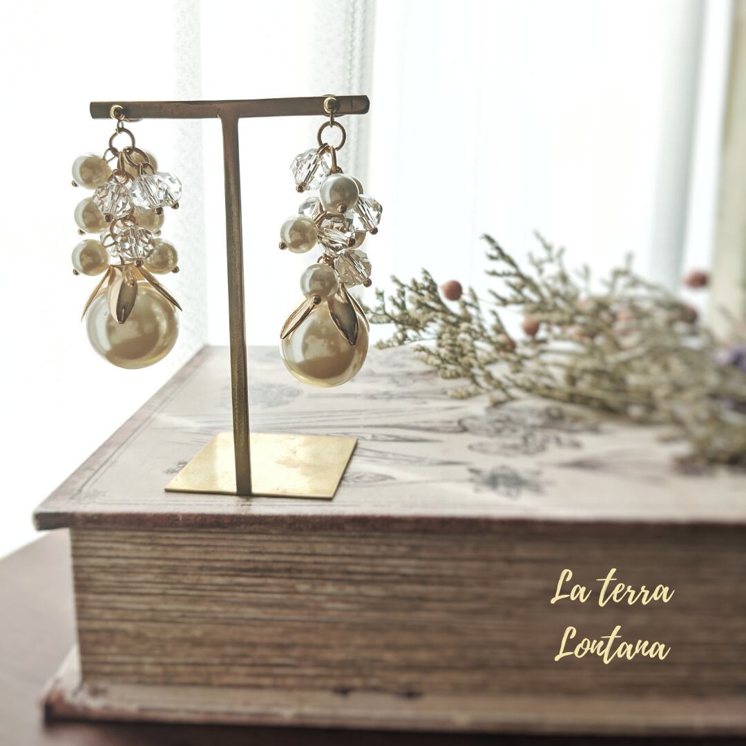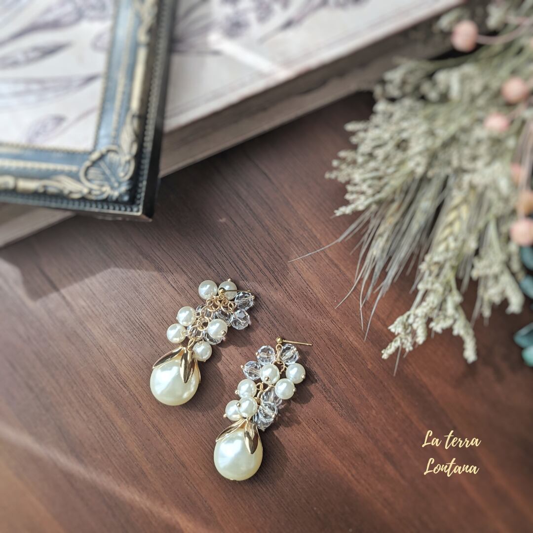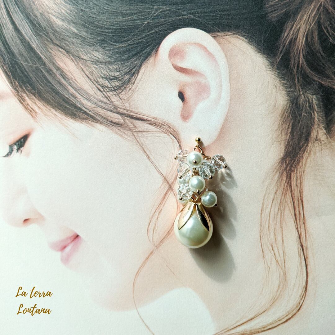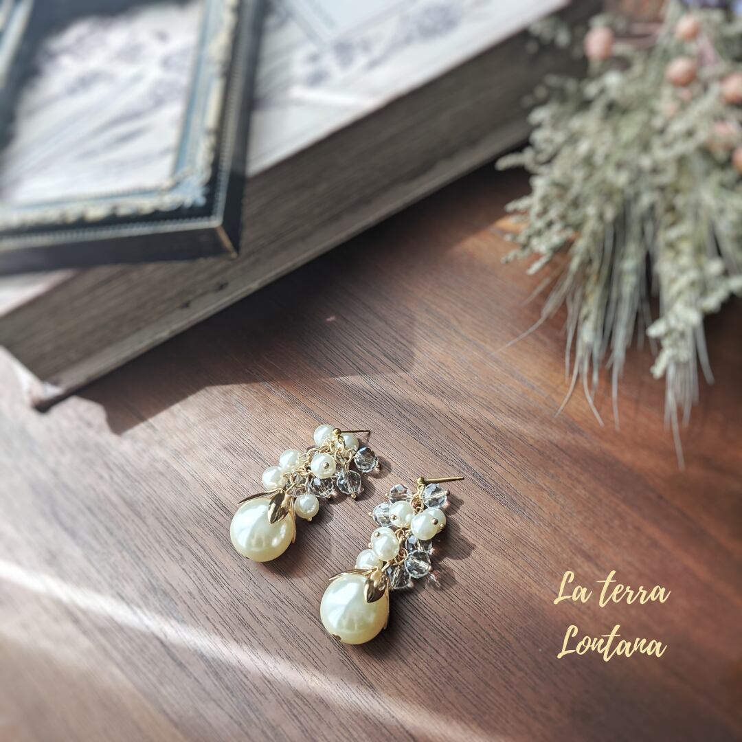 大粒パール×クリアビーズ × 小粒パール ピアス/ イヤリング