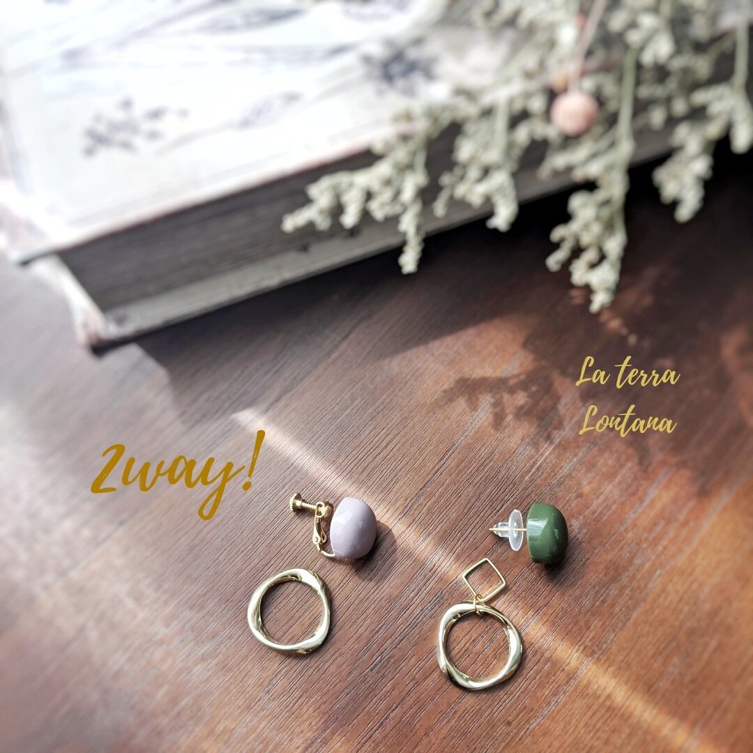 2way! くすみカラーカボション × ひねりフープ ピアス/イヤリング