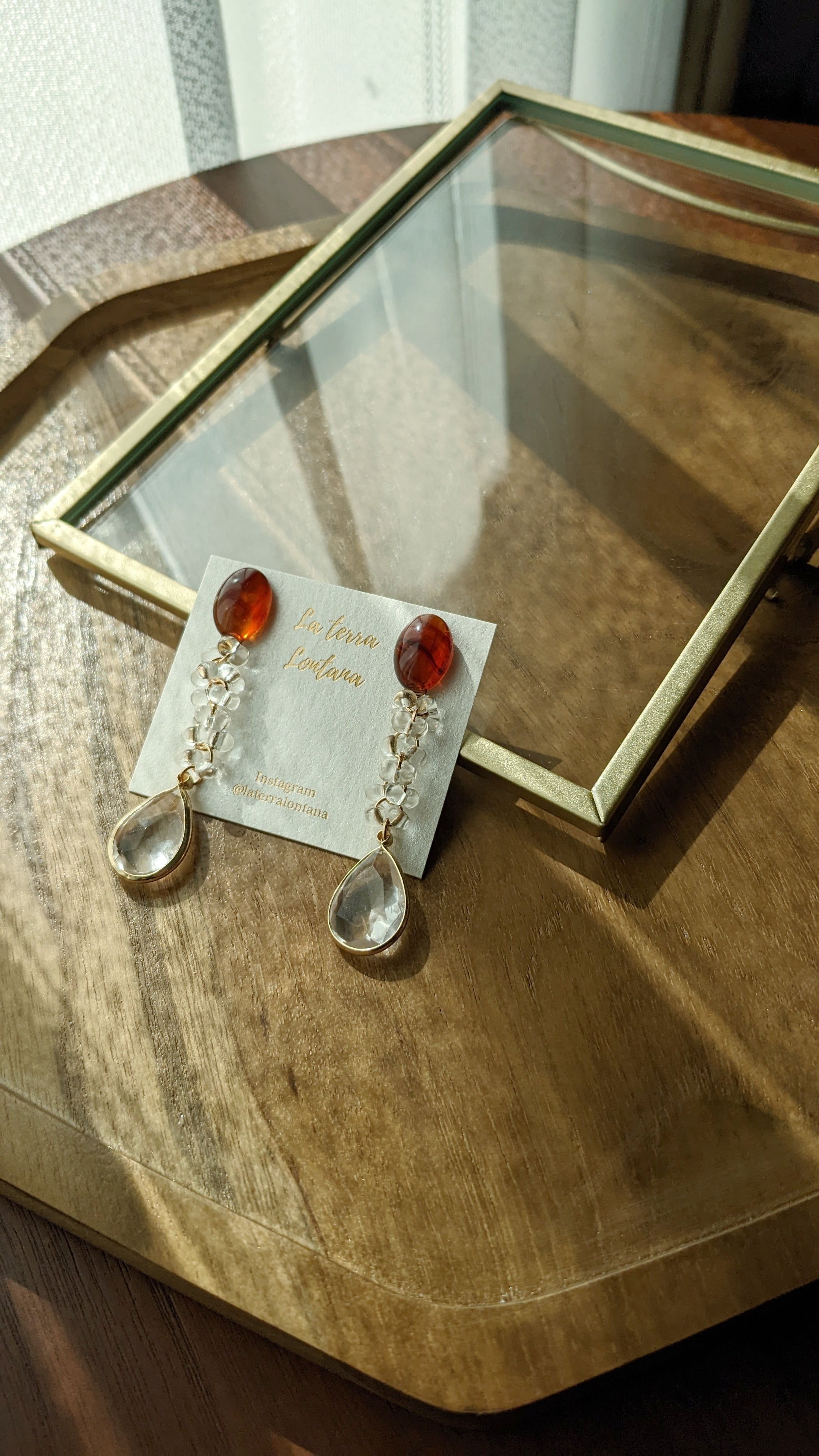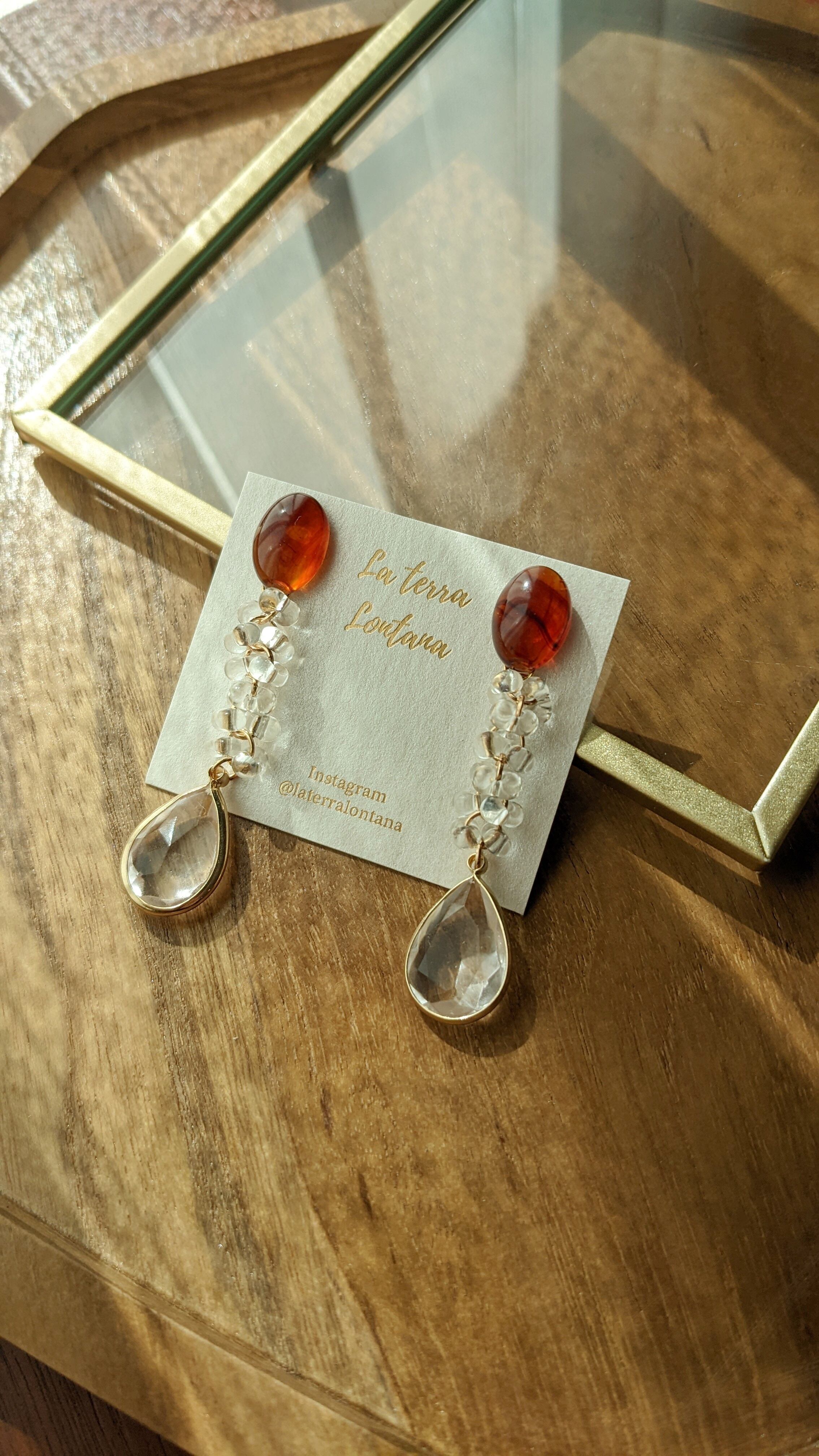 べっ甲ラウンドカボション × クリアビーズ ピアス / イヤリング