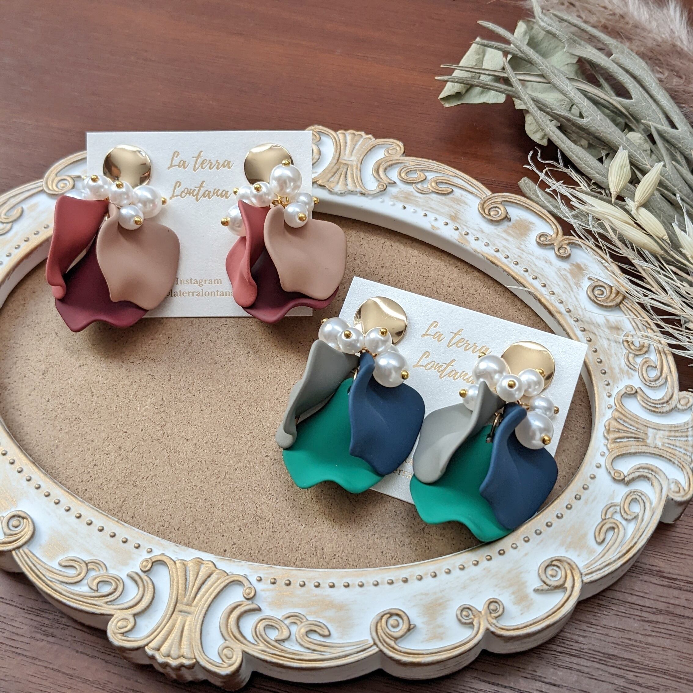 ゴールドプレート × マットカラー花びら ピアス/イヤリング