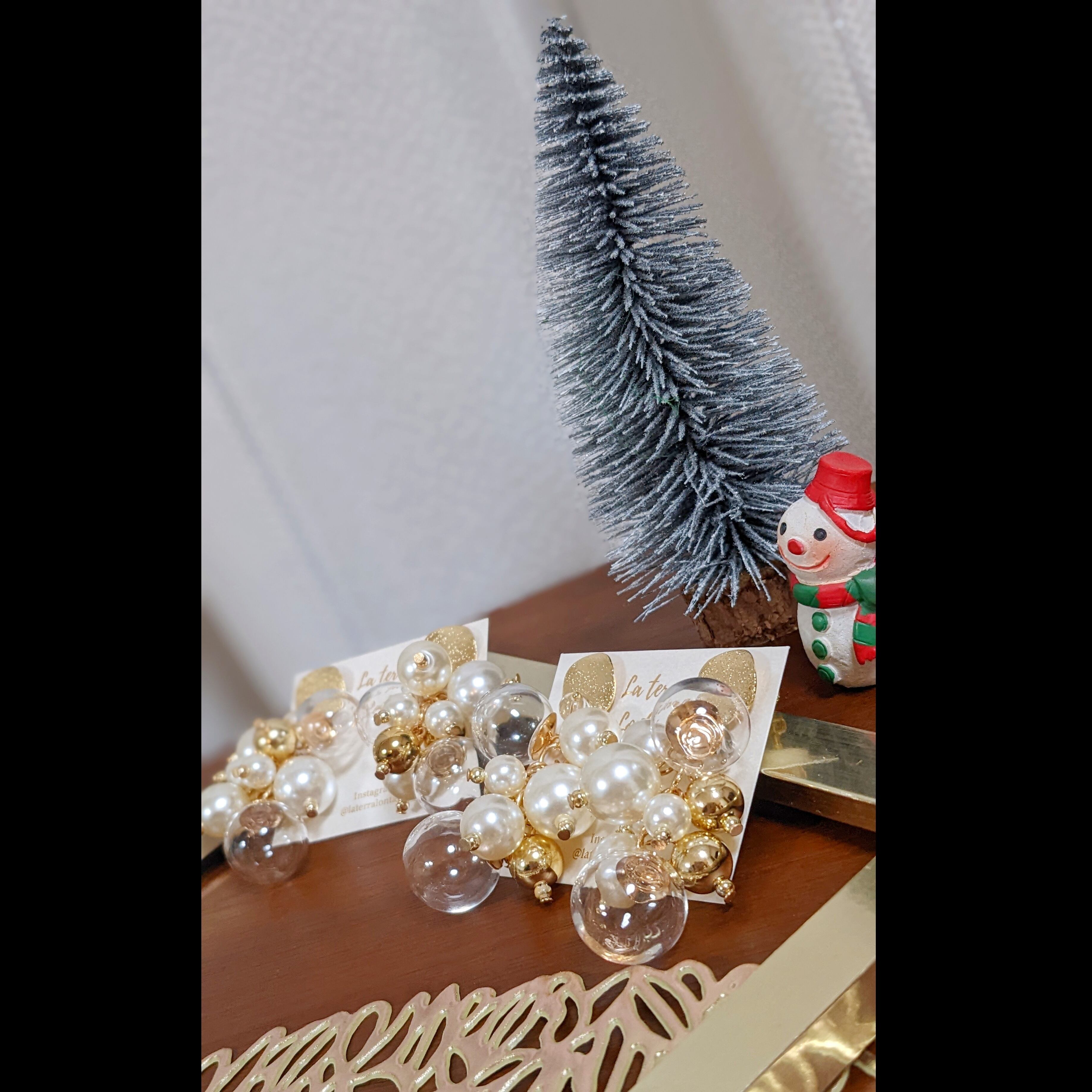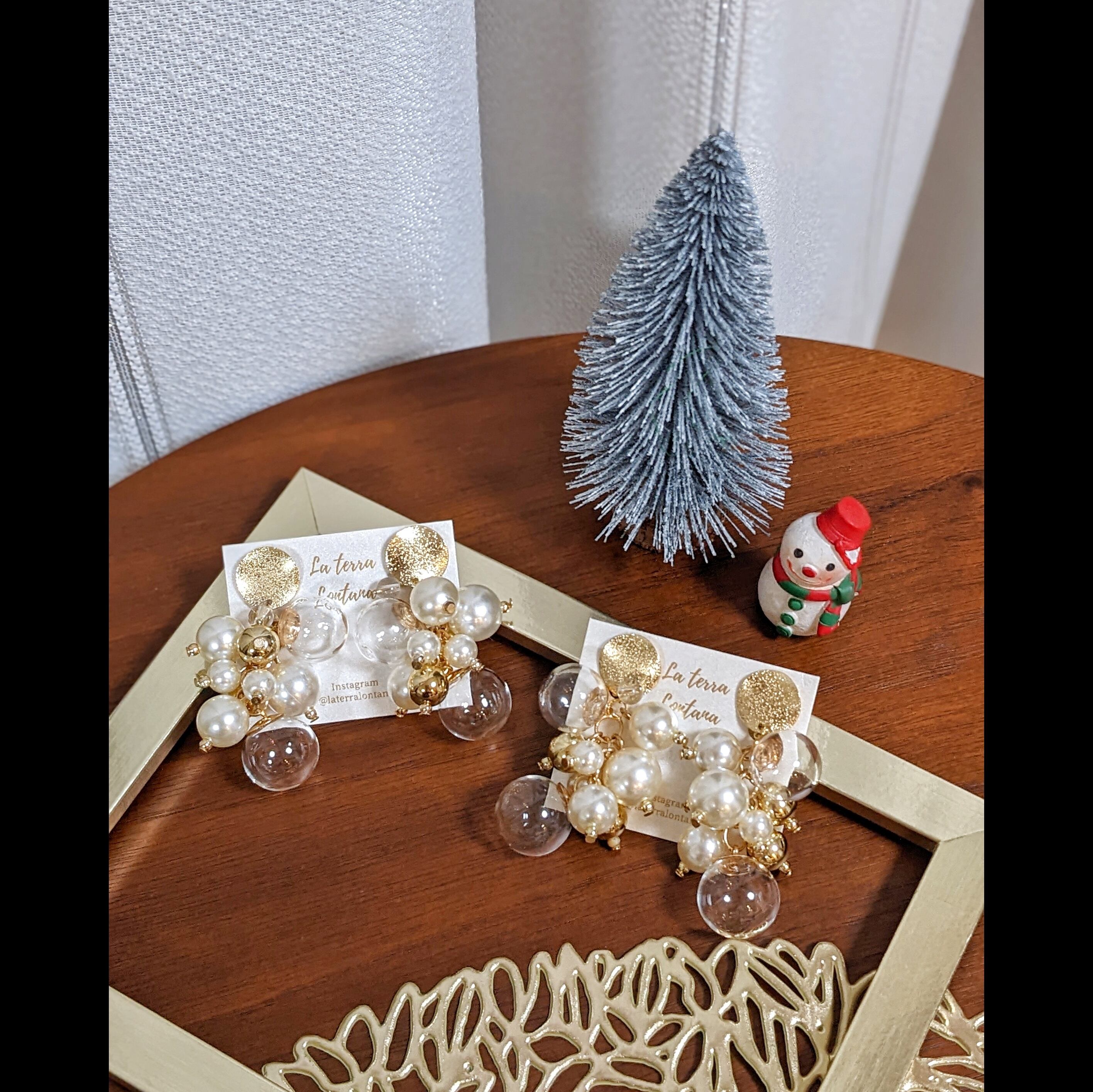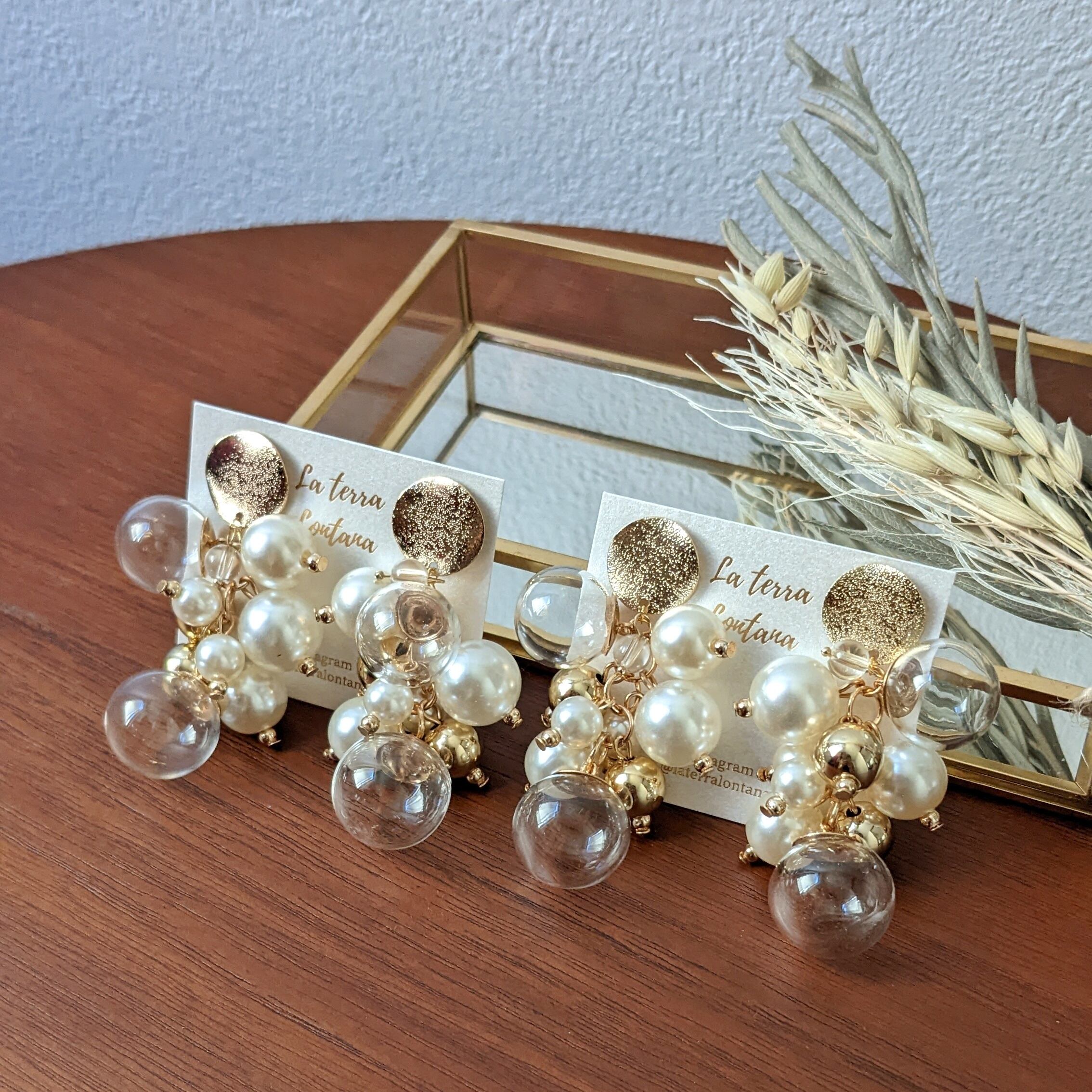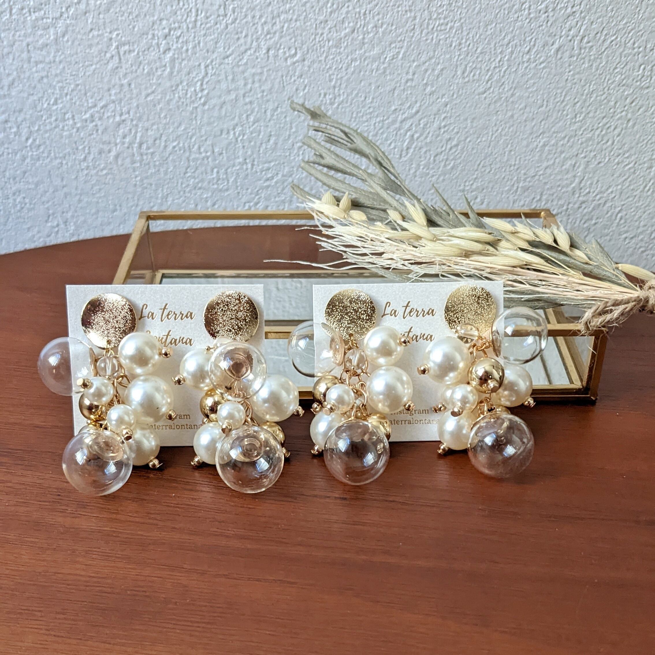 ゴールドプレート × ガラスボール × パール ピアス/イヤリング